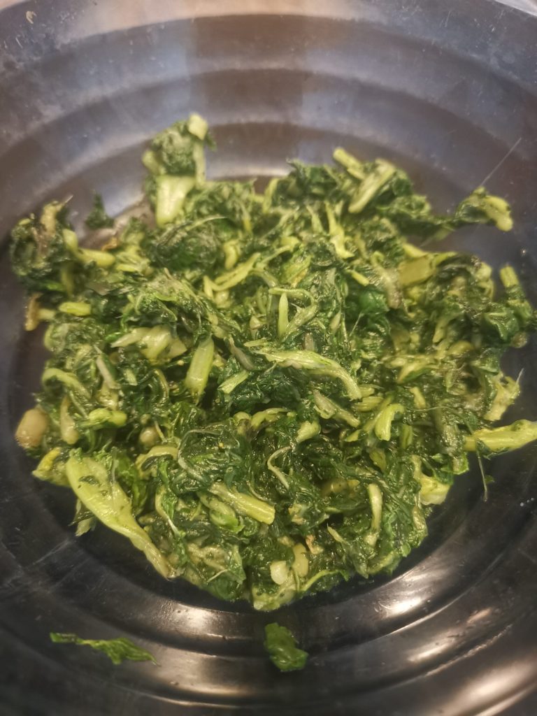 Clean the Swiss chard, remove the toughest stalks, wash them well and boil in salted water for 5–7 minutes.