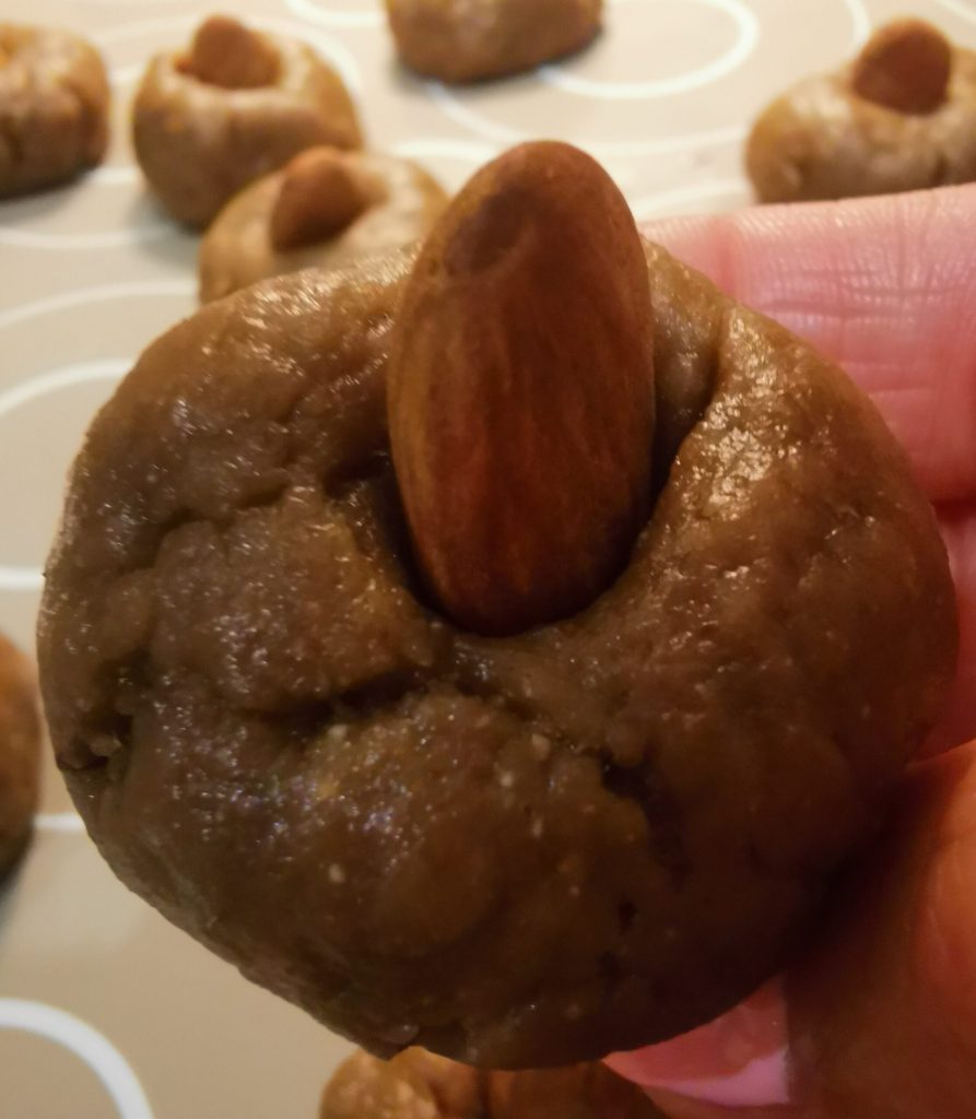 • 2/3 oz almonds (one per cookie, if you like, otherwise nothing)