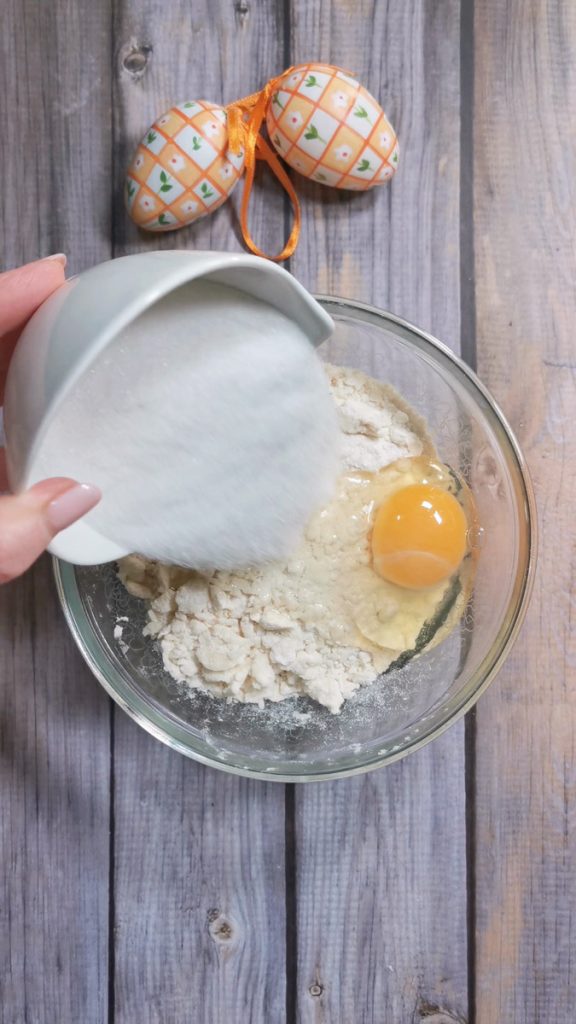 • the sugar, the pinch of salt, and the vanilla extract. Knead until you create a smooth dough, once ready, cover it with plastic wrap and let it rest for half an hour in the fridge.