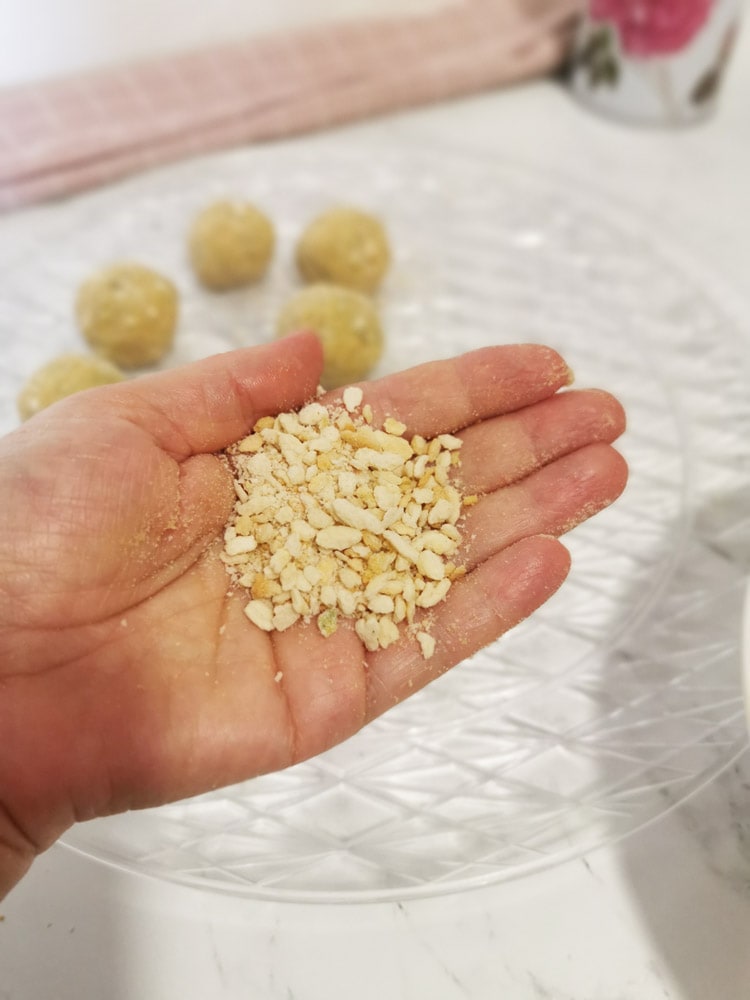 • Take small amounts of dough and create the meatballs.