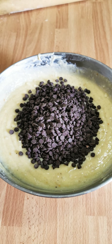In the meantime, take the dough and create a layer about 1/8 inch thick, line a 9.5 inch pastiera baking pan, without greasing or flouring. Leave some dough to create decorative strips.Take the filling and chocolate chips out of the fridge, now pour the chips into the bowl and mix the mixture well. Then pour the filling into the pastry shell, then roll out the remaining pastry and create the strips. Decorate forming diamonds and bake in a preheated oven at 356°F on the lower rack for about 1 hour.
