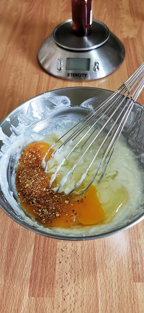 Mix the ricotta with the sugar until you get a nice smooth and lump-free mixture, then add the eggs, and the grated orange and lemon zest. In addition to the grated zest of orange and lemon, I also used the dried citrus powder, which I always prepare at home.”If you’re interested, see how to make it” Finally, add the cooled wheat to the mixture, mix the ingredients well, and cover with plastic wrap. Now put the filling in the fridge.