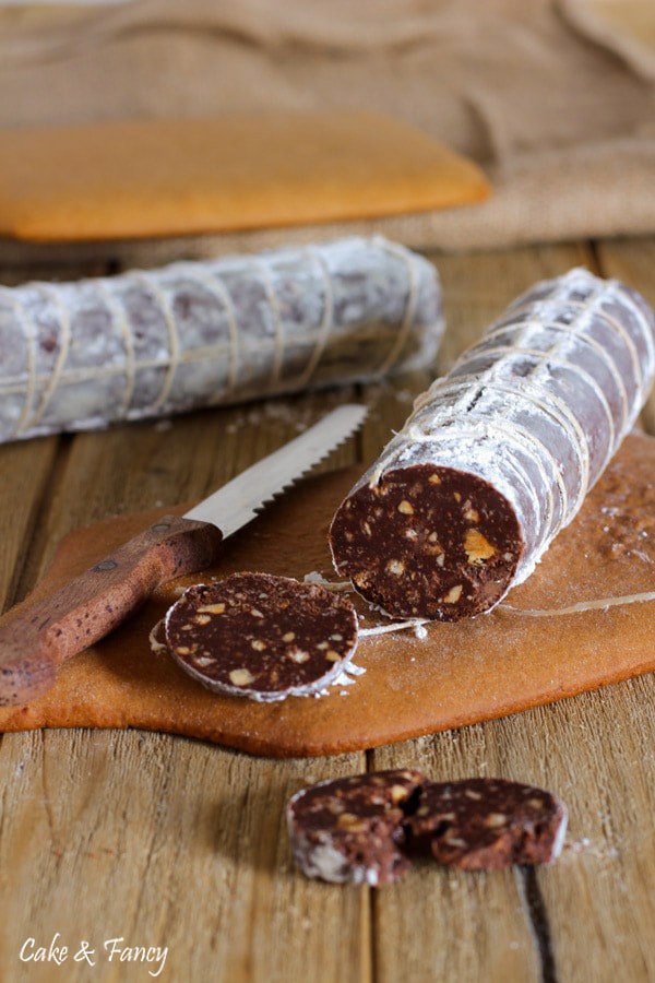 Bake on the middle rack of a preheated oven at 350°F and let it bake for about 15/20 minutes. Once baked, let them cool. Now your cutting boards and chocolate salami are ready to be enjoyed or gifted.