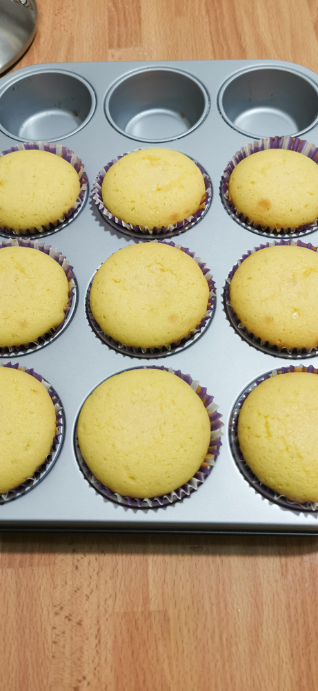 Now place the cupcake liners in the muffin tray and pour the mixture; if you don’t want to use liners, always grease the pan. The batter should fill about 3/4 of each mold. Bake in a preheated oven at 350°F (180°C) for about 20/25 minutes, the time is always indicative, you need to adjust according to your oven.