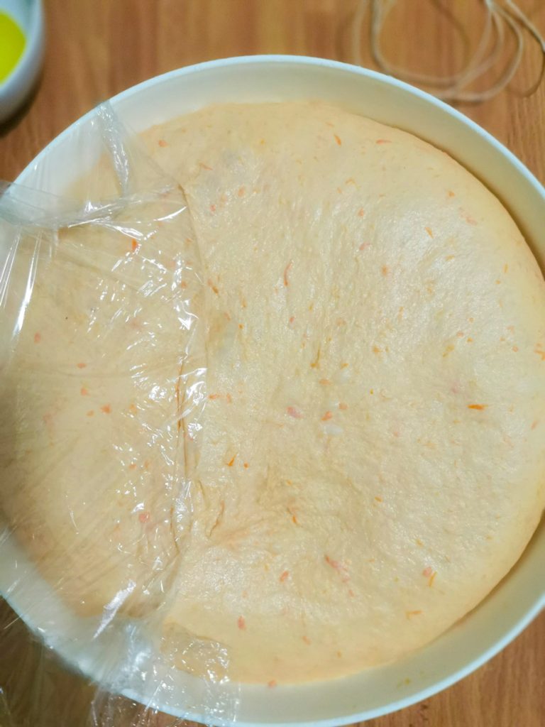 Place the pumpkin bread to rise for another 30 minutes on a baking tray lined with parchment paper, leave it in the turned-off oven with the light on.
