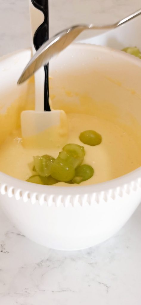 If you wish to have the grapes on the surface as well, add only half of the fruit to the dough; then pour the mixture into the mold and level it well, then distribute the remaining grapes on top. (To keep the fruit on the surface of the cake, before distributing it, pass it in the flour, just a few tablespoons).