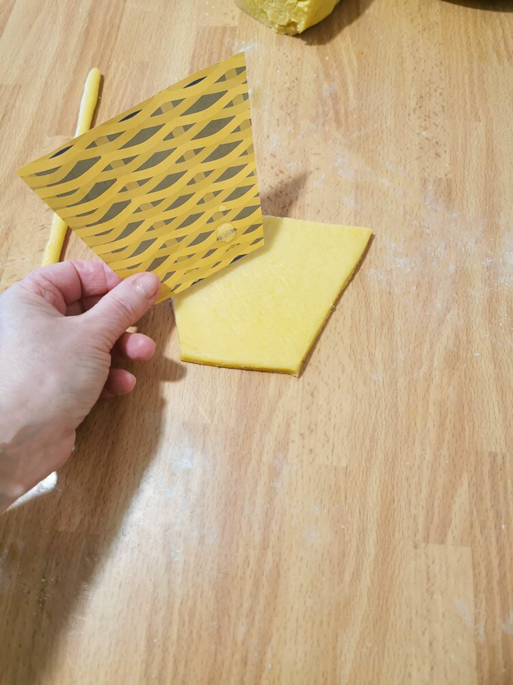 In the end, our dough should be nice and smooth, and without resting, we can start rolling it out. Shape it into forms that you like, using paper templates found online if needed. Cut the dough into basket, doll, heart, bell shapes, or others.