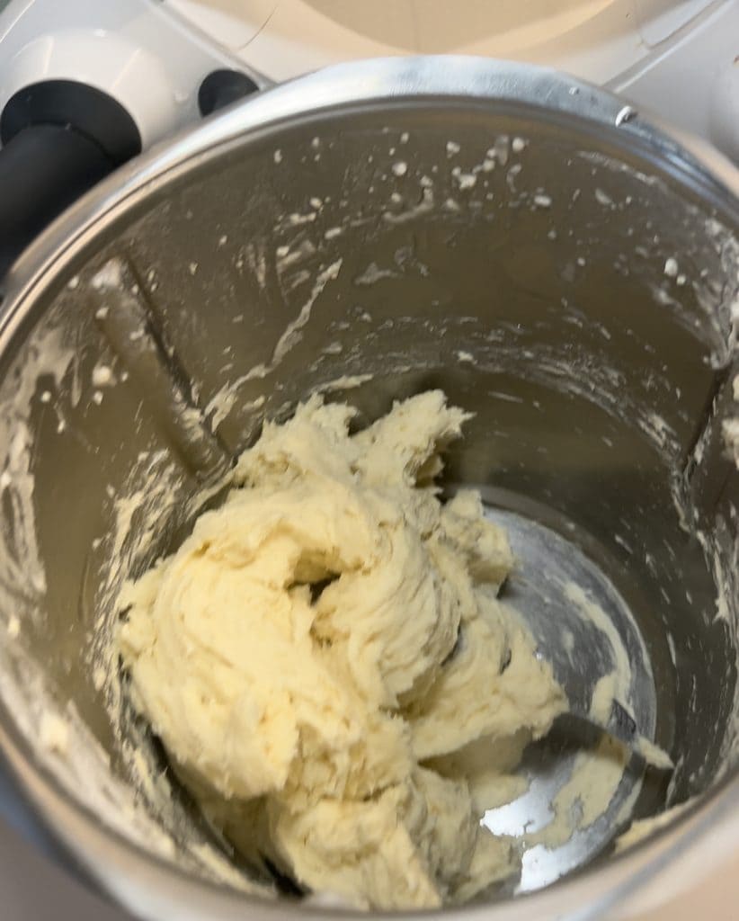 I recommend using a stand mixer or the Thermomix to get a more uniform product, but you can also try it by hand.