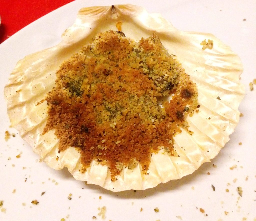 Put 4 or 5 mussels in each scallop shell (I also used mussel shells) and cover them well with the breadcrumb mix.