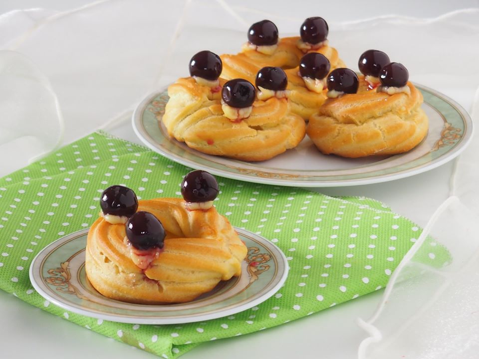 Baked Zeppole filled with custard cream are the quintessential dessert prepared for the feast of St. Joseph on March 19th. I find it excellent, and the addition of sour cherries makes it exquisite!