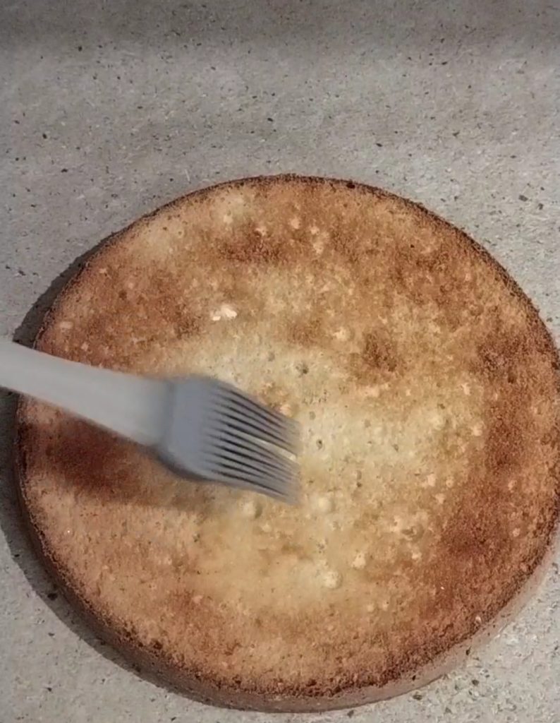 Soak the sponge cake with about 2/3 cup of orange juice.