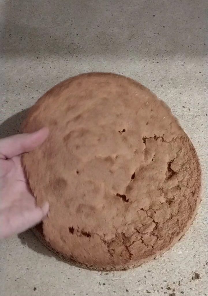 With a sharp knife, cut the top part of the sponge cake. If you want it thinner, cut a thicker slice.