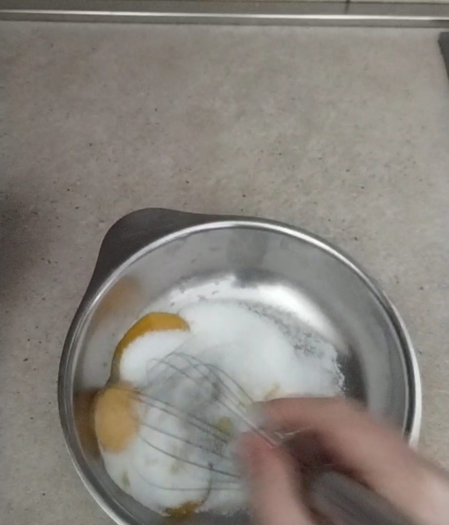 Put the egg yolks and sugar in a bowl. Beat them with a whisk until the mixture becomes frothy. Set aside.