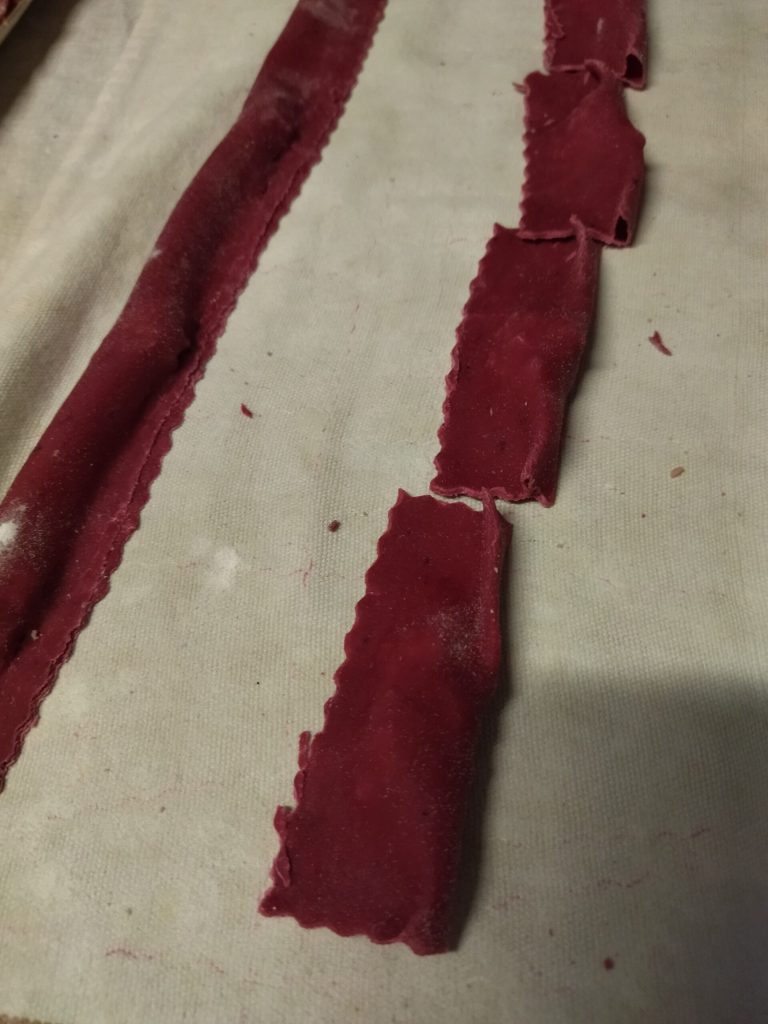 While waiting for it to cool, start preparing the beetroot pasta.