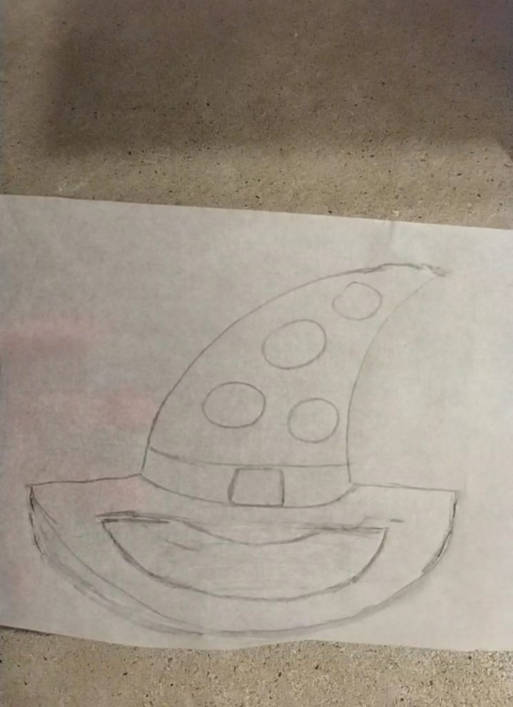 Cut out the shapes on the parchment paper. The hat has a brim about 6.5 inches wide and is about 6 inches high.