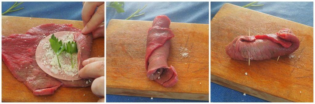 Braciole with tomato sauce (Lucanian recipe) is a dish that my mother-in-law usually prepared on Easter day. The name braciole might be misleading because in almost all of Italy, braciola is the classic pork chop with bone, but in Basilicata, it’s a roll made with a slice of horse meat, which we usually substitute with veal topside. With the braciole sauce, we seasoned homemade pasta, ruccoli, prepared with just flour, water, and a pinch of salt. Flavors of the past that come back.