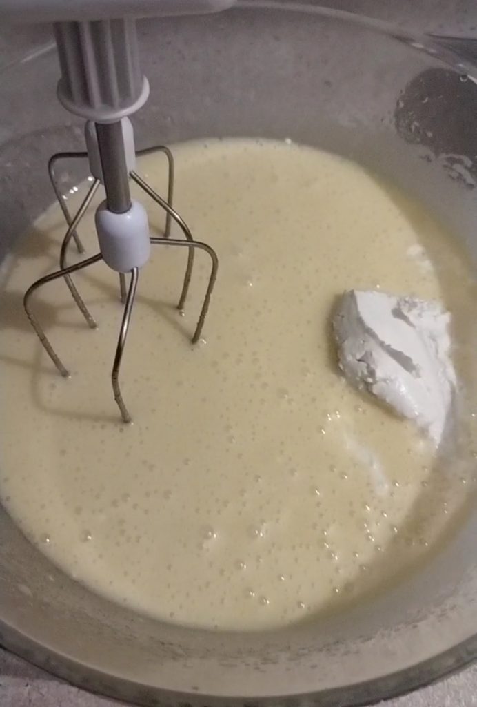 Add the mascarpone gradually, beating until everything is well combined.