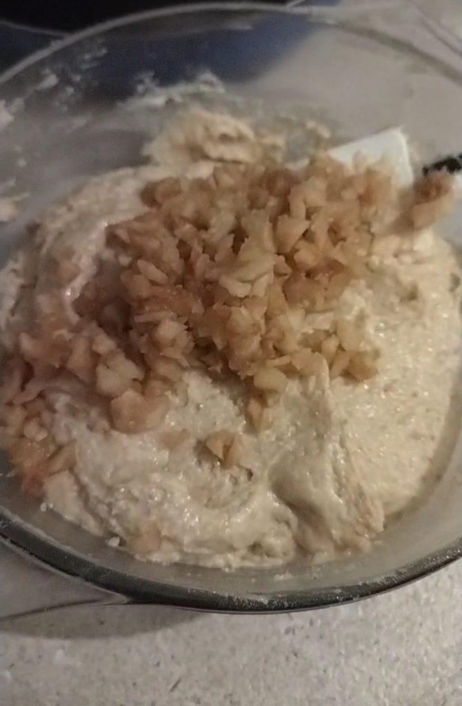 At this point, add the completely cooled caramelized apples and mix.