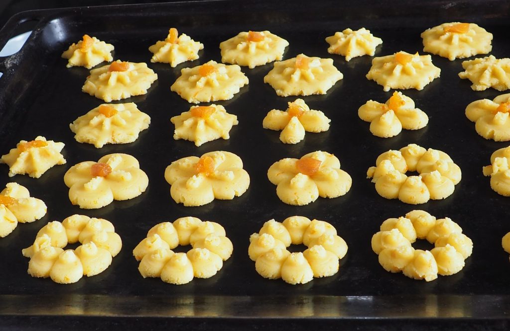 With the cookie press, you can make one or two clicks, which will determine the size of the cookies.