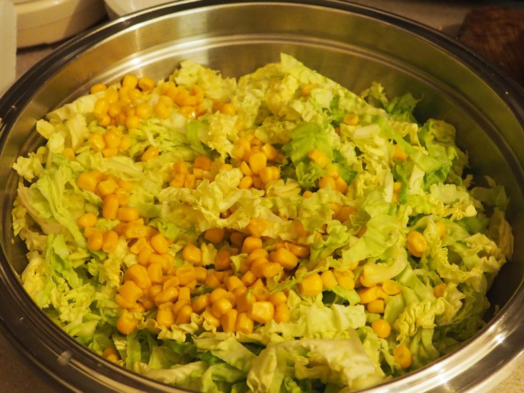 • Now drain the corn and pour it into the container with the cabbage.