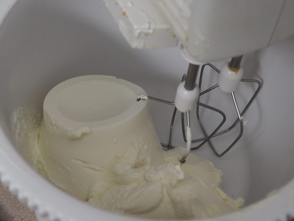 In a mixer with whisks, put the ricotta and mascarpone and start mixing.