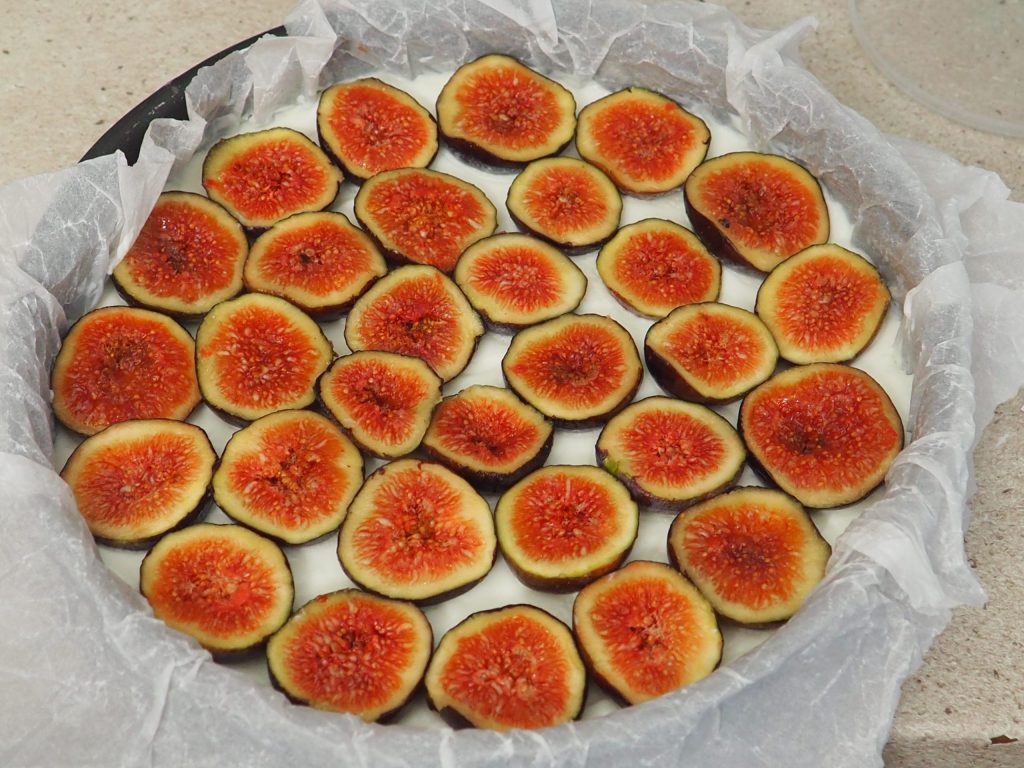 Now make a layer of figs, which you have washed and cut in half lengthwise.