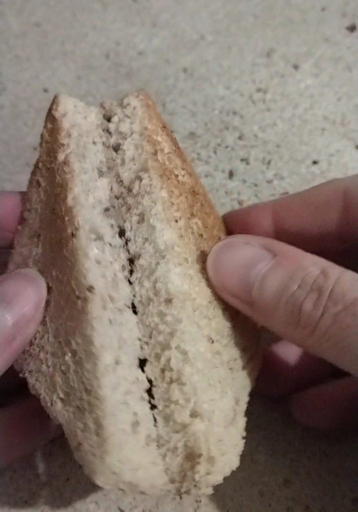 Toast the bread slices and cut each slice into two parts, cutting them along the diagonal.