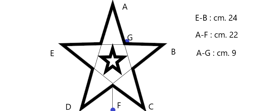 We made the star with paper templates with the following dimensions: for the outer star, 9.5 inches wide x 8.6 inches high, star points 3.5 inches long; for the small central star, 3 inches wide x 2.8 inches high, star points 1 inch long. It’s definitely better if you buy two ready-made cookie cutters.