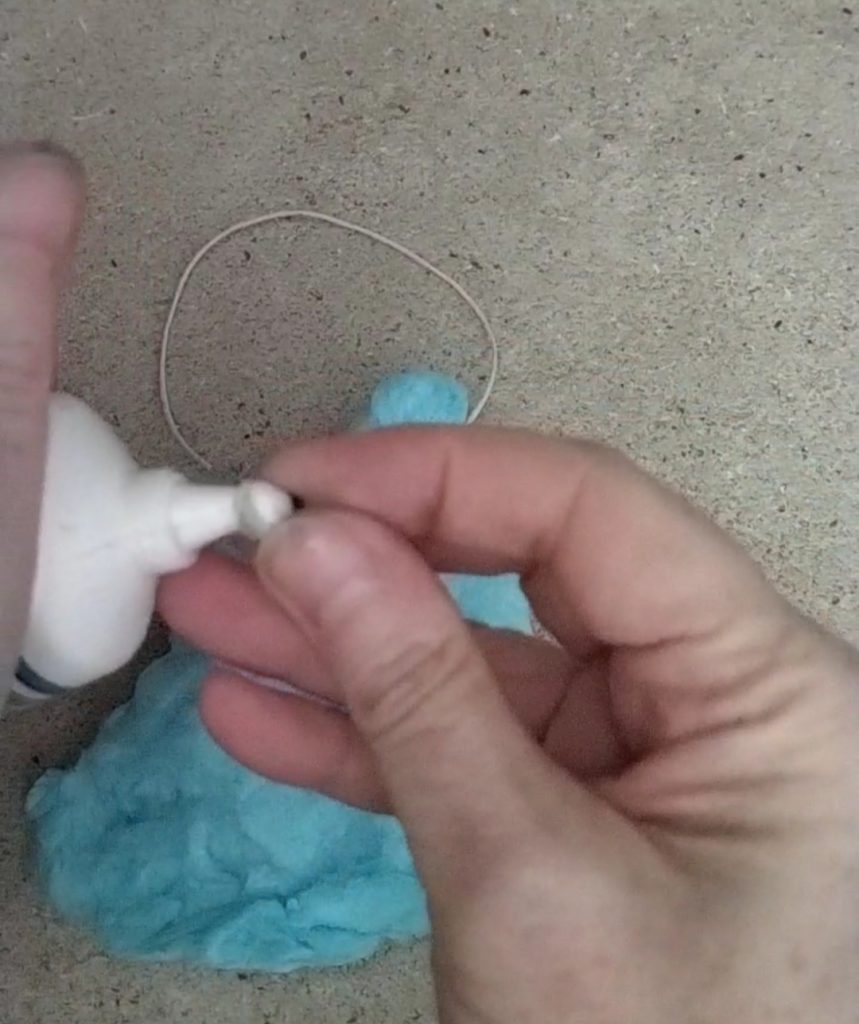 Place a piece of kitchen string on the back; to prevent it from slipping, you need to make the cotton candy adhere very well to the string.