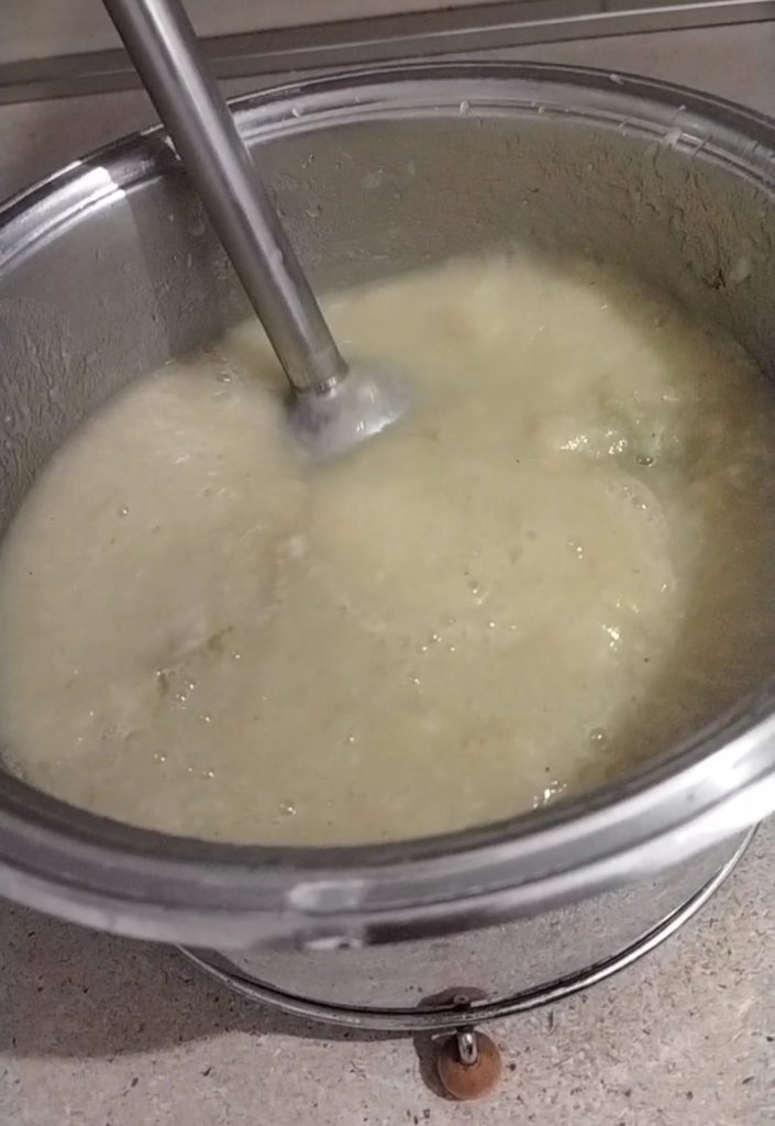Once the vegetables are cooked, blend everything with an immersion blender.