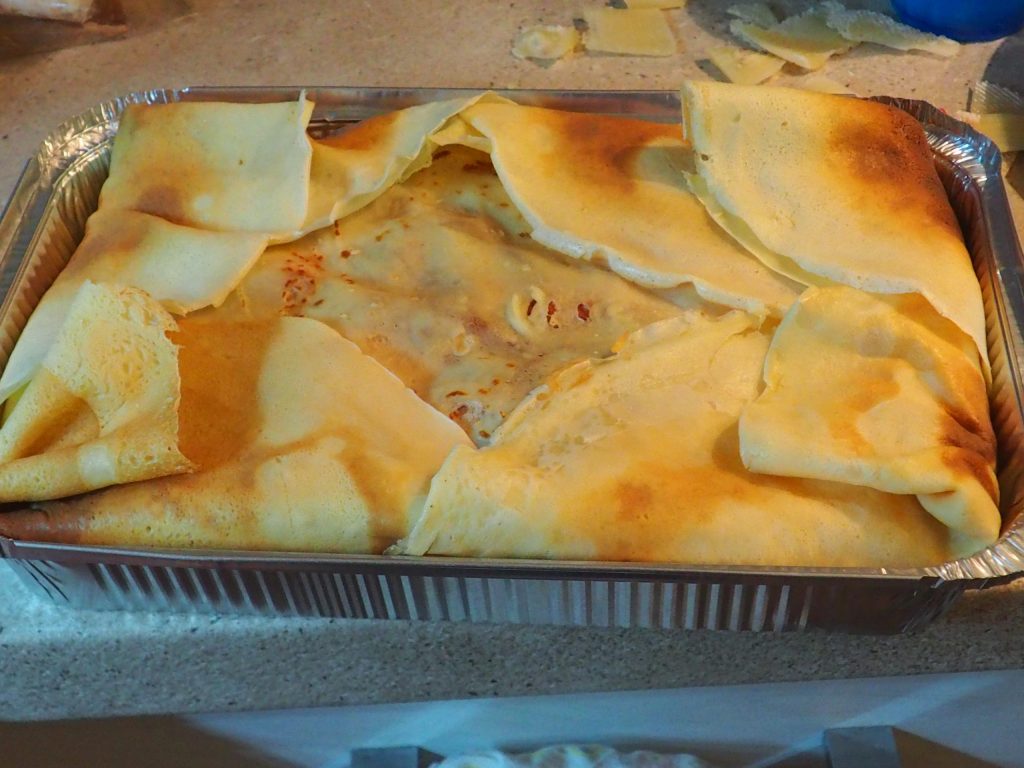 • Close the pie with the edges of the crepes placed at the bottom of the pan. Put in the oven for about 20 minutes at 356°F.