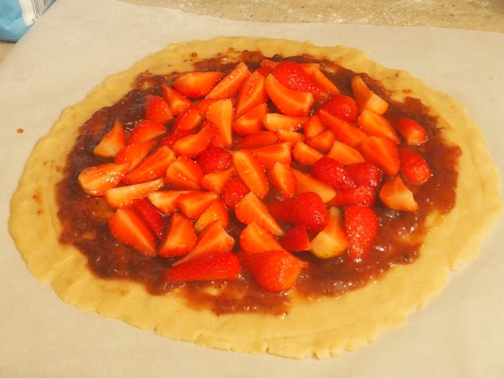 Spread the base with the jam, leaving at least 0.4 inches from the edge.
