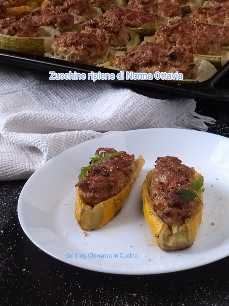 Grandma Ottavia’s Stuffed Zucchini is a recipe originally made by my grandmother and now my mother. They are truly exquisite, tender and crispy, super tasty. Without pre-boiling the zucchini, they will cook in the oven along with the sausage and minced meat filling. If you like, you can also add some cooked ham.