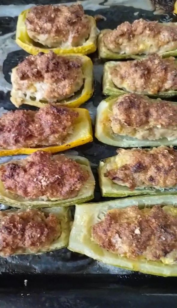 I recommend leaving a bit of zucchini on the sides, without hollowing them completely, this way the filling will not tend to spill out.