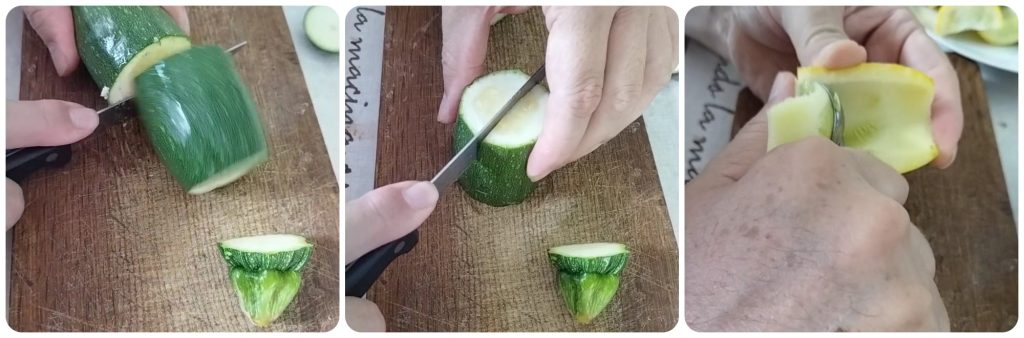 Cut the inner part of the zucchini into small pieces (if you like, you can also put it in a food processor), place it back in a bowl, salt it and wait a few minutes for it to release water. Now squeeze them well and place the pulp in another bowl.
