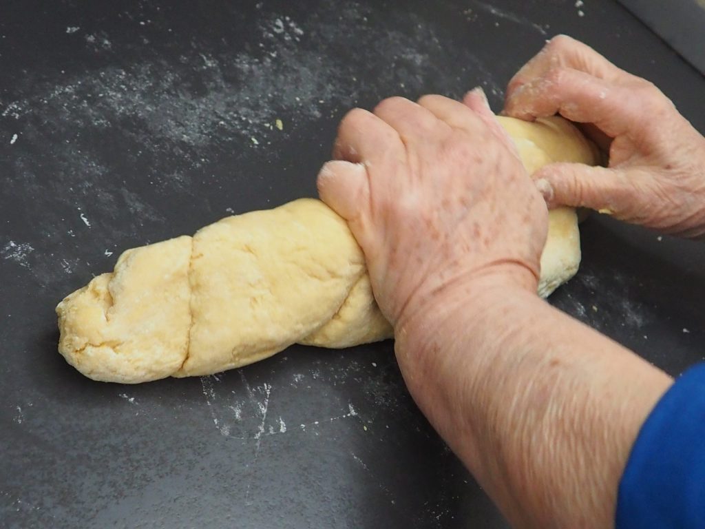 Cut a slice of dough about 5.3 oz and flatten it slightly with your fingers.