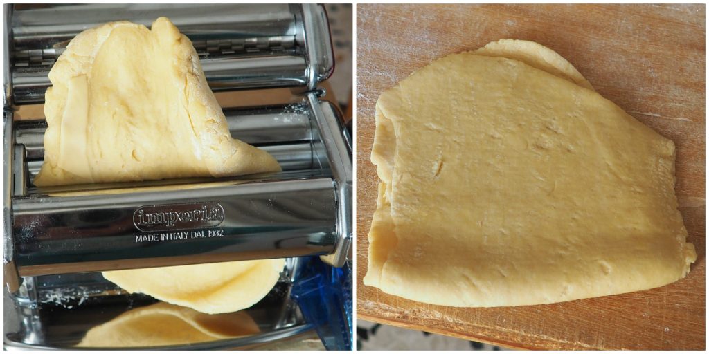 Insert the piece of dough at the maximum thickness, fold it over itself, and pass it again at the maximum thickness.