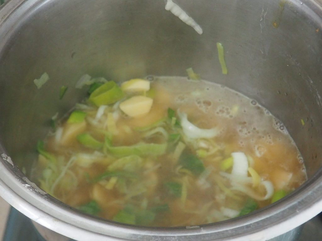 Add the potatoes to the pot with the leeks, prepare a liter of broth with the cube and add it to the vegetables. Cook for about 30/40 minutes with the lid on.