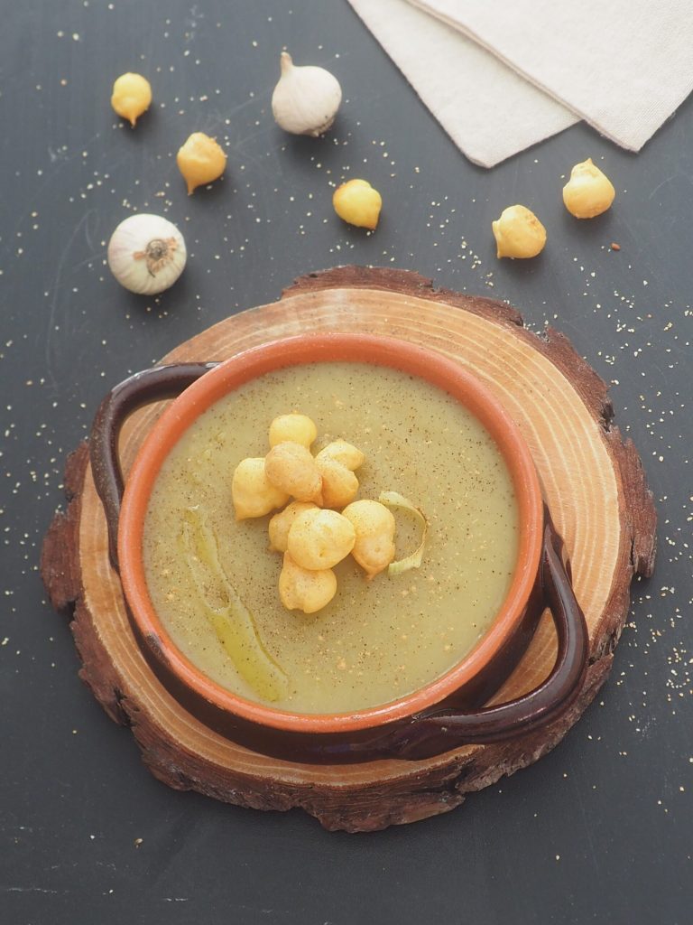 Complete the dish with royal pasta for broth or toasted croutons. You can add a drizzle of oil, some ground black pepper, ginger, and a little dried garlic on the surface.
