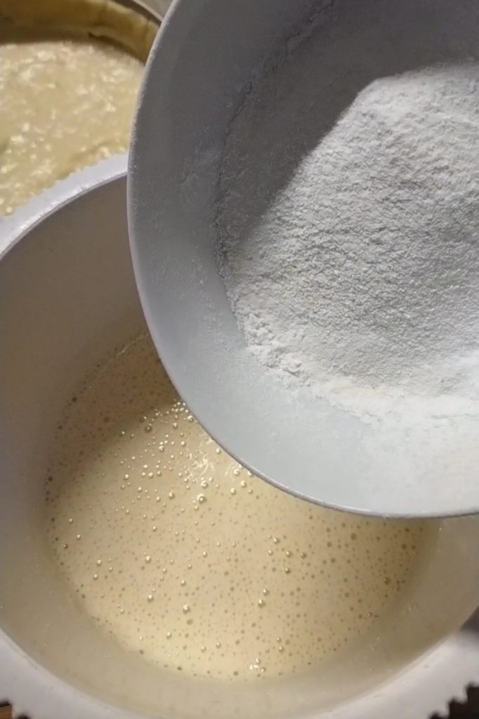 At this point, sift the flours two or three times to aerate them and add them to the egg mixture. Stir very gently with a spatula until the ingredients are well combined.