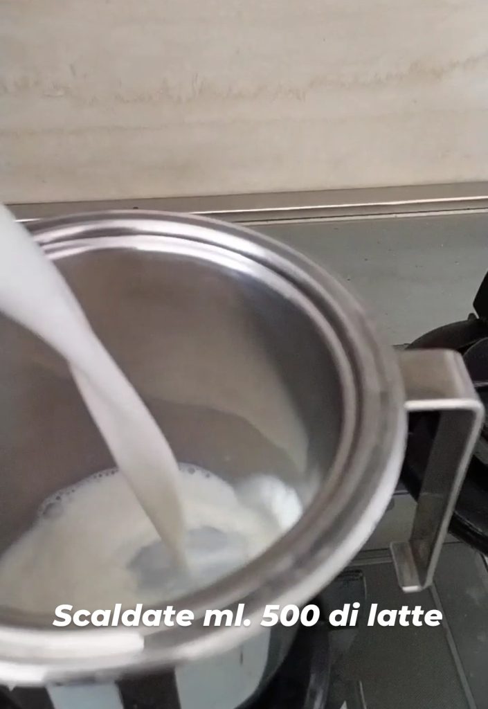 • Add the egg mixture to the hot milk, which should not boil, and cook while stirring with the whisk. Turn off the heat when it reaches a temperature of 180-185°F, it should not boil, or it may curdle.