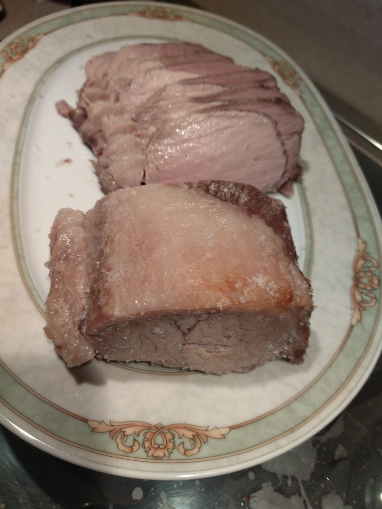 Oven-Baked Salted Pork Loin is prepared with few ingredients, in this case just two, but I guarantee you’ll get a really amazing flavor with this dish. It’s an easy dish to prepare, the important thing is not to overcook it, but to try to keep the inside slightly pink.