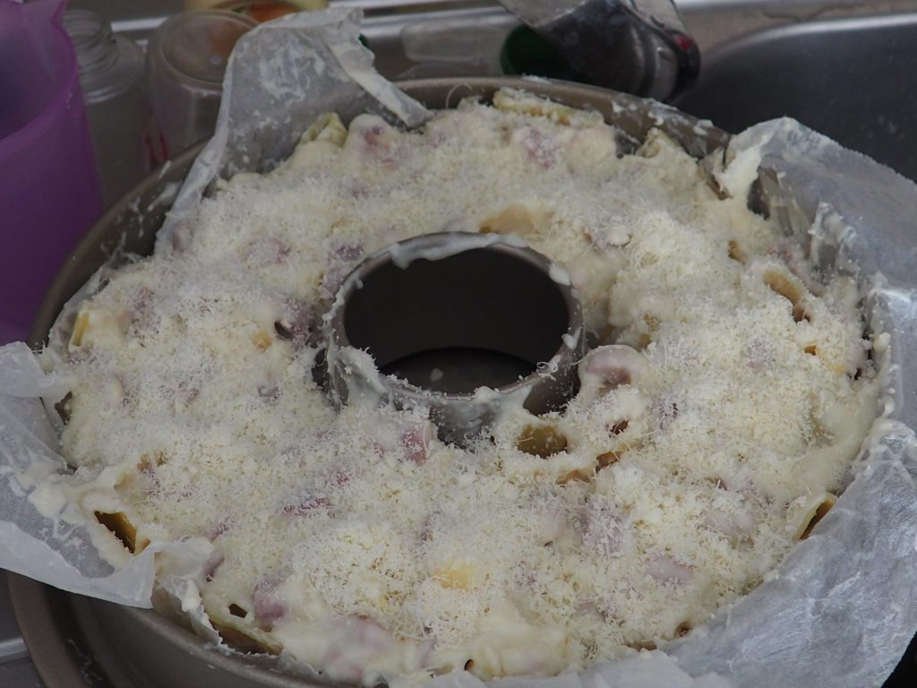 I recommend using a springform pan, it will be easier to serve the pasta to the diners.