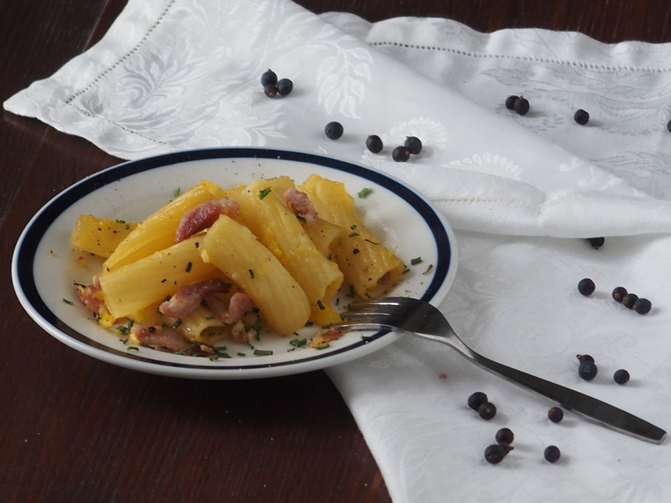 If you liked the Penne, bacon, and eggs (Carbonara-like), you can try other pasta recipes with bacon: