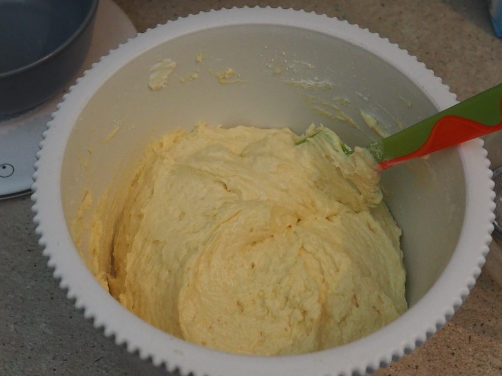 Now incorporate the eggs, also at room temperature, one at a time, wait for the first to be completely incorporated, then add the second.