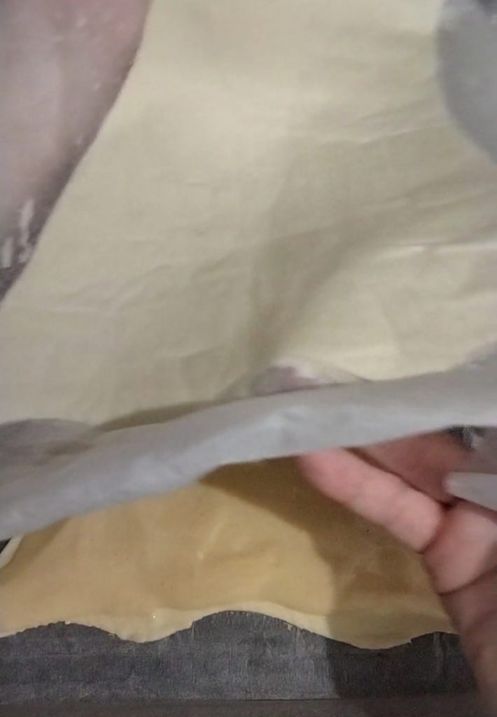 Draw the ghost figure on a sheet of baking paper. If you’re skilled, you can also draw it directly on the puff pastry.