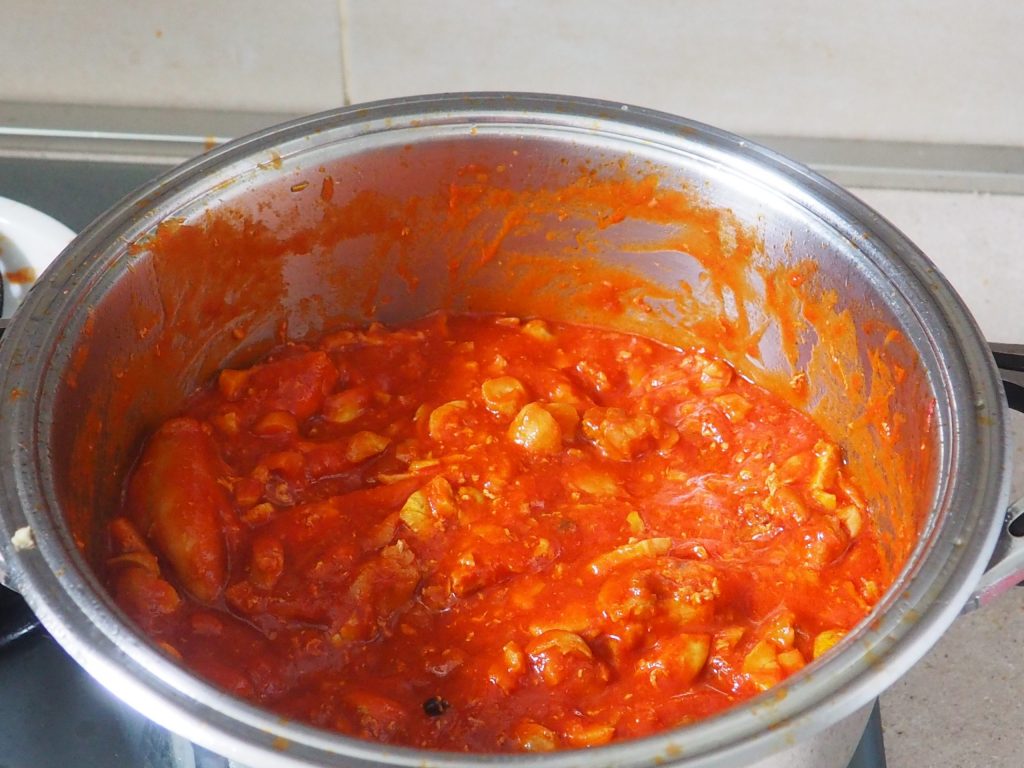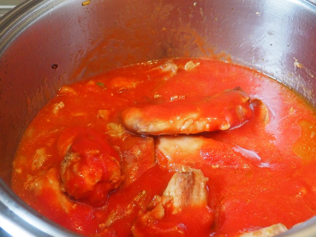 • Put the meat back in the pot with the tomato sauce, adjust salt if necessary, and cook for a few more minutes.