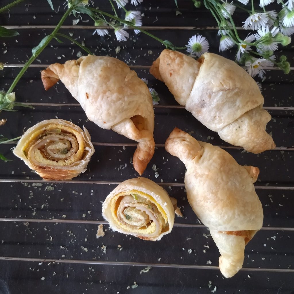 For these Savory Croissants with Omelette and Grilled Zucchini, I have just one adjective: exquisite! They are soft, crunchy, super tasty. I prepared them with two omelettes and two slices of grilled zucchini, if you prefer, you can also use just one omelette and one slice of zucchini. This way, you might close the croissants better, but we like them nice and chubby!