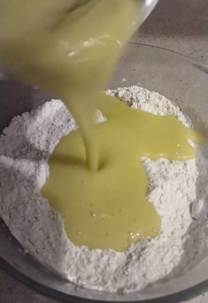 Now pour the liquid ingredients into the dry ones.