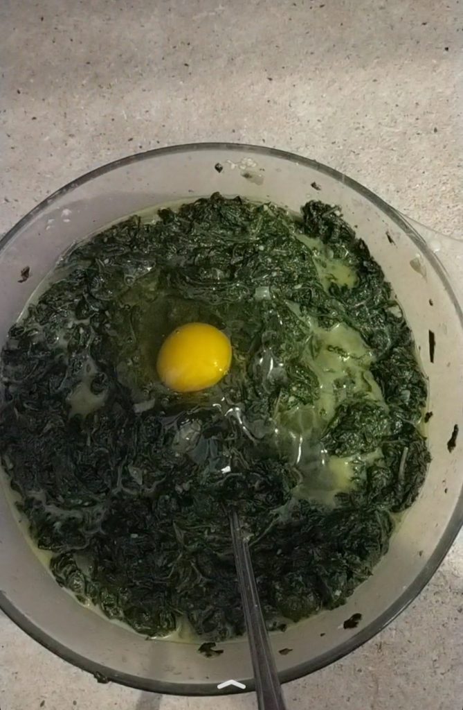 Now add the spinach, wait for them to be warm, otherwise they will cook the eggs.